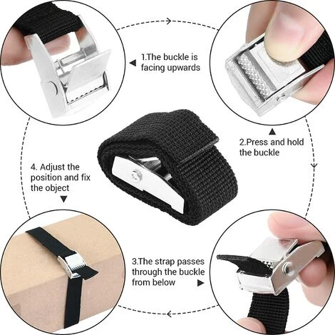 Hochwertiges Material :Die befestigungsriemen fahrrad besteht aus einer Zinklegierung, die haltbarer ist als Edelstahl.Das schwarze Gurtband besteht aus hochwertiger Polypropylenfaser.Es ist leicht, einfach zu tragen, ohne Haken und einfach zu bedienen. Geeignet für viele feste und mobile Anwendungen.