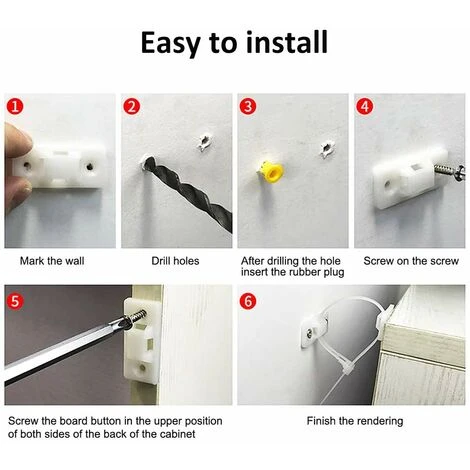 - Hochwertige Materialien: Hochwertige Möbelanker aus Nylon und Metall haben eine gute Flammhemmung, eine gute Rissbeständigkeit, eine hohe Stabilität und erhöhen effektiv die Sicherheit und Stabilität. Die Möbel können in einer für Kinder und Kinder geeigneten Position befestigt werden. Kinder schaffen und pflegen sichere Haustiere in der Umwelt! </ li> </ ul>