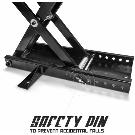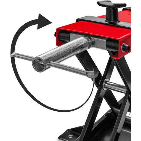 Hebebühne für Motorräder. Ideal für Arbeiten wie das Einstellen der Kette, das Wechseln der Bremsbeläge, das Wechseln der Ritzel oder des Öls und andere verschiedene Wartungsarbeiten. Es ist sowohl für Motorräder als auch für Quads geeignet und kann auch auf einer Hebebühne verwendet werden. Die Hebebühne wird durch eine 29 mm (1-1/8″) Scherenkonstruktion manuell bedient und verfügt über starke Flügel, die an der Basis jeder Seite angeschweißt sind und für eine permanente Montage konfiguriert sind, um ihr während des Einsatzes größere Stabilität zu verleihen. Er besteht aus starkem Stahl und hat eine Kapazität von 500 kg, was bedeutet, dass er sogar Granturismo-Fahrräder heben kann.