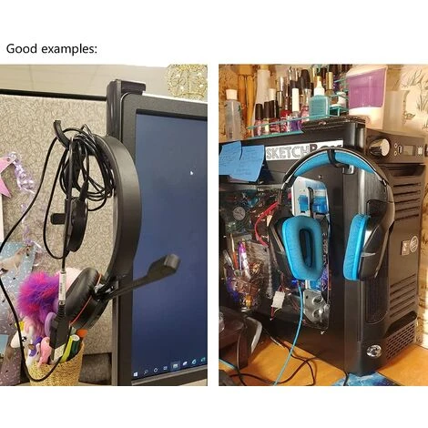 Einfach aufsetzen ein Haken an der Seite des PCs, jetzt sind die Headsets in Reichweite, ohne Platz auf dem Schreibtisch zu beanspruchen.