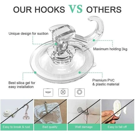 Überlegene Qualität,Die Saugnapfhaken verwenden hochfestes, klares PET-Kunststoffmaterial und High-Tech-Verriegelungstechnologie nicht vergilben oder die Haftung im Laufe der Zeit verringern.