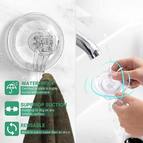 Heavy Duty, Die Vakuum-Saugnäpfe können bis zu 3 Kilogramm tragen. Sie müssen sich keine Sorgen machen, dass Ihre Gegenstände herunterfallen. Sie können Tasche, Mantel, Schlüssel, Hut, Schal im Wohnzimmer aufhängen, Duschvorhang, Handtuch, Bademantel, Luffa, Schwamm, Schürze, Utensilien in Bad und Küche organisieren oder tägliche oder Festivaldekorationen im Innen- oder Außenbereich halten.
