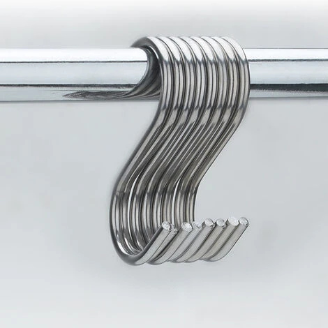 Robust und praktisch — Der Metall-S-Haken ist robust und dick, hält schweren Gegenständen stand, verformt sich nicht leicht und wird häufig in Schränken, Küchen, Badezimmern, Lagerräumen, Garagen verwendet. Werkstätten, Büros usw.