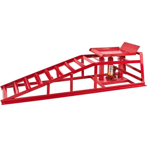 - Im Lieferumfang enthalten 2x Auffahrrampe, pro Rampe 1x Hydraulik-Wagenheber + Pumphebel