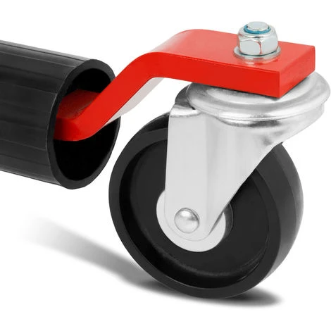 Die Funktionsweise des Rangierhebers ist denkbar einfach. Er wird seitlich unter das entsprechende Rad geschoben und hebt dieses über das Fußpedal hydraulisch bis zu einer maximalen Höhe von 285 mm an. Auf diese Weise sind Lasten bis zu 680 kg pro Rangierhilfe möglich. Die vier am Gerät angebrachten Lenkrollen ermöglichen ein müheloses Verschieben und Bewegen. Über das Ablassventil wird das Rad an der gewünschten Position wieder gesenkt. Dabei schützen die Kunststoffrollen vor Beschädigungen.