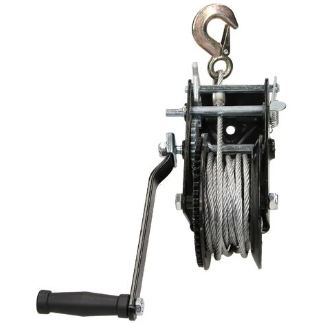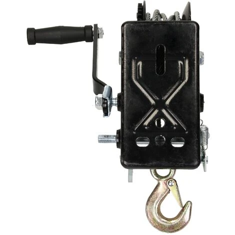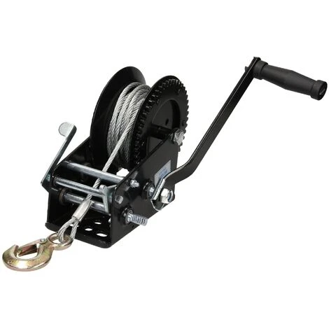 Die Handseilwinde von ECD Germany verfügt über ein 10 Meter langes, drallfreies Drahtseil mit einem Sicherheitslasthaken und einer Sicherungsklappe. Der Kranaufsatz verfügt über eine praktische Seilwind. Die Handseilwinde ist für ein Gewicht von bis zu 1500 kg geeignet.