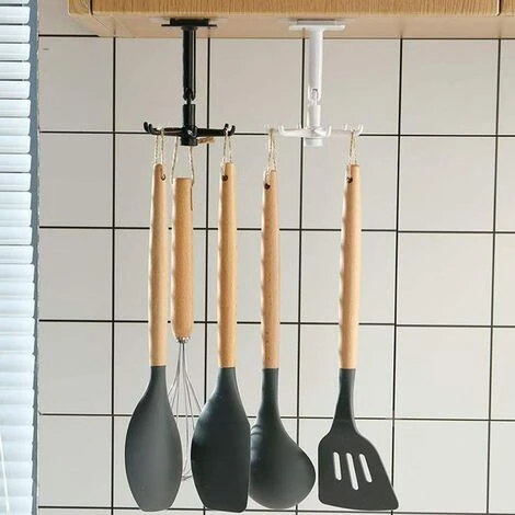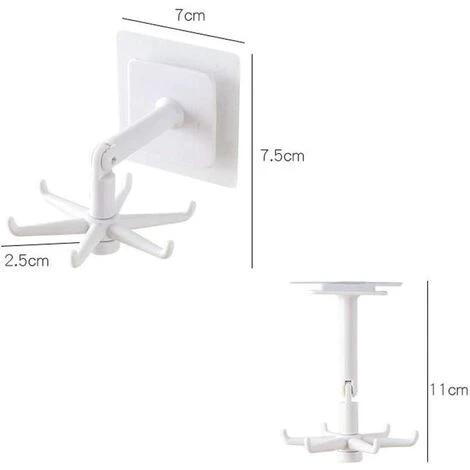 【Platzsparend】 Das stanzfreie Wandregal ist einfach und nimmt keinen Platz ein. Das Design von 360°drehbarem und 180°vertikalem Flip erleichtert die Handhabung, Drehung und Aufbewahrung. Sie können die drehbaren Haken an der Wand oder unter dem Schrank anbringen, Ihre Küche gut organisieren, sie in Ihr Schlafzimmer stellen, Badezimmer sind auch eine gute Wahl, viel Platz sparen.