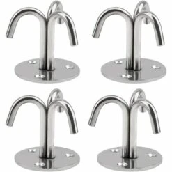Inhalt: 4 Edelstahl-Dreizinken-Deckenhaken, runder Fuß Durchmesser: 51 mm; Höhe: 54 mm; Lochdurchmesser: 5 mm.