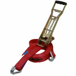für die Ladungssicherung beispielsweise für Papiertransporte. Zurrgurt mit Spitzhaken und stärkerer Vorspannkraft . aus hochfesten Polyesterfasern (100 %). Vorspannkraft erfolgt auf Zug (Zugratsche: Betätigung der Ratsche nach unten). gefertigt und geprüft nach EN 12195-2.