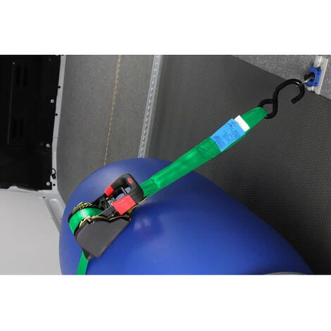 Endbeschlag: S-Haken. zur Befestigung von mittelschweren Gütern. aus hochfesten Polyesterfasern (100?%). gefertigt und geprüft nach EN 12195-2.