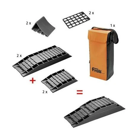 9-teiliges Set bestehend aus:2 große Keile mit Auffahrhöhen: 4 cm und 5,5 cm, erweiterbar mit:2 kleine Keile 4 cm, ergibt Gesamt-Auffahrhöhe 9,5 cm2 Auffahrhilfen2 Parkstopper1 TransporttascheDer Ausgleichskeil ermöglicht optimalen Höhenausgleich bei Steigungen und unebenen Standflächen.Produktattribute: Produktfarbe: schwarzBreite: 18 cmHöhe: 9,5 cmLänge: 50 cmBelastbarkeit: 2.000 kg/Stück