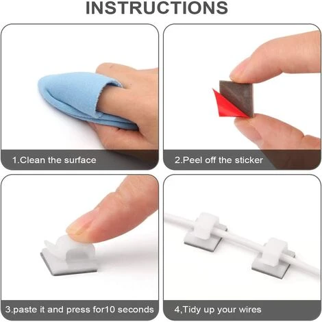 【Hinweis vor Gebrauch】 Stellen Sie sicher, dass die Montagefläche sauber ist. Kein Schmutz, Staub, Fett und Wachs. Bitte führen Sie das Kabel nicht sofort ein, nachdem der Kabelclip auf die Nutzfläche geklebt wurde; Das doppelseitige Klebepad erreicht die stärkste Haftung nach 24 Stunden.