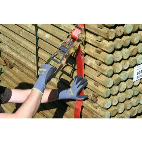Ergebnis: Die gleiche Ladung kann mit erheblich weniger Zurrgurten gesichert werdenmit Zugratschen-Spannelement ( Ziehen statt Drücken )