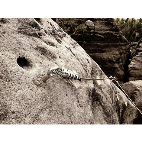 Die Ausdehnung wird durch Anziehen eines Gewindebolzens erzeugt, wodurch sich die Hülse gegen die Wände zu einem Widerhaken ausdehnt.