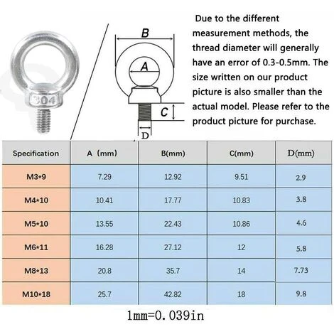 Produktvorteile: 304 Edelstahl Außengewinde Hubring Augenschraube, sie bestehen aus sehr großen Maschinen. Nach vielen Experimenten hat er bewiesen, dass das Äußere nicht oxidiert und rostig wird.