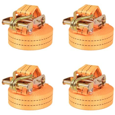 Die strapazierfähigen Zurrgurte mit Ratschen können im Allgemeinen für die Befestigung bzw. Fixierung der Ladung bei Transport oder Lagerung verwendet werden. Die strapazierfähigen und robusten Zurrgurte sind aus qualitativ hochwertigem Polyester gefertigt und bieten eine Zurrkraft von je 1 Tonne. Die Spanngurte wurden unter Einhaltung der EN-12195-2 Europanorm hergestellt und sind mit einfach bedienbaren Ratschen mit J-Haken ausgestattet, welche die Spannung unterwegs aufrechterhalten und dafür sorgen, dass die Lasten am Platz bleiben. Im Lieferumfang sind 4 Zurrgurte mit Druckratsche enthalten.