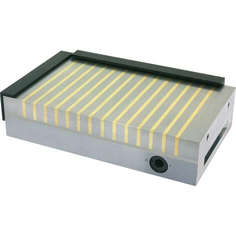 Permanent-Magnetspannplatte PMNEO Ausführung: Doppeltes Neodym-Magnetspannsystem mit einem Stahl-Grundkörper. Die Oberplatte kann ohne Beeinträchtigung bis zu einer Tiefe von 6 mm bearbeitet werden. Die Spannplatte wird über einen abnehmbaren Sechskantschalthebel aktiviert. Haftkraft: ca. 160 N/cm² Magnetfeldhöhe: ca. 10 mm Querpolteilung: 11 + 3 mm Anwendung: Zum Spannen von Werkstücken für die Schwerzerspanung, auch an rauen Oberflächen werden gute Haltekräfte erreicht. Hinweis: Werkstücke ab 30 x 15 x 6 mm können mit der maximal erreichbaren Haltekraft aufgespannt werden. Eigenschaft: Länge:400 mm|Breite:200 mm|Höhe:56 mm|Gewicht:35 kg|WGNr.:W350 |