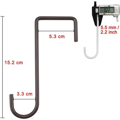 8 Stück 5 x 15 cm große Vinylzaunhaken, passt problemlos für Innen- und Außenhängeleuchten, Pflanzen und Pflanzgefäße , Vogelfutterhäuschen, Poolausrüstung Größe: Unsere braunen Zaunhaken sind 6 Zoll lang und 2,33 Zoll breit und passen problemlos an die meisten Vinylzäune, Pergola und Tore. Unsere strapazierfähigen Terrassenzaunhaken sind aus hochwertigem Stahl mit brauner pulverbeschichteter Oberfläche, stark und langlebig, braune Farben passen perfekt zu Ihrer Pergola, Ihrem braunen Zaun und Ihrem Tor. Einfach zu bedienen, kein Werkzeug oder Schrauben erforderlich, beschädigt Ihr Tor oder Ihre Zäune nicht, einfach einhängen und abnehmen, eine einfache und effektive Lösung, um Ihren Garten oder Hof sauber zu machen. Ideal zum Aufhängen von Blumentöpfen, Vogelhäuschen, Außenleuchten, Poolausrüstung, Glockenspielen, Vordächern, Leitern, Kunsthandwerk oder anderen Terrassenwerkzeugen. Das Paket beinhaltet 8 Zaunhaken; passt sich leicht an Vinylzäune, Tore, Holzlauben, Pergolen an.