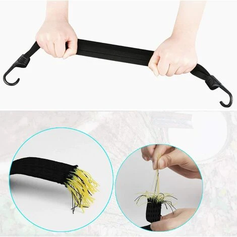 Einfach zu bedienen: Beste Wahl für Langstreckenfahrten. Einfach zu lagern und zu tragen. Das elastische Seil bietet genügend Länge und Festigkeit, um sperriges Gepäck zu sichern. Kann im Fahrradsitz und problemlos im Kofferraum, Van, unter dem Sitz oder im Schuppen oder in der Garage aufbewahrt werden.