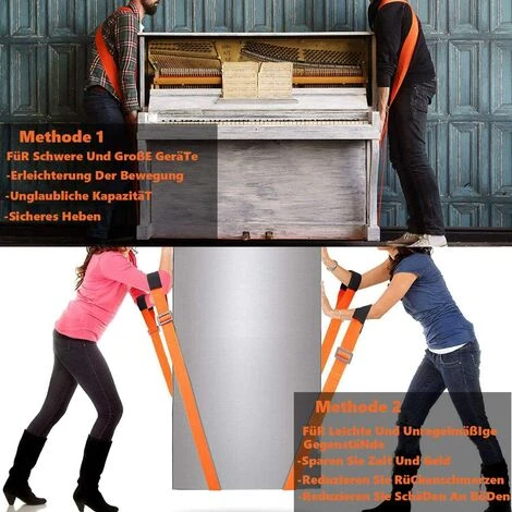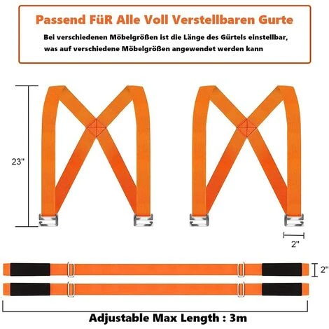 【Mehrzweck】: Die tragegurt ist leicht zu tragen und kann unter einer Schublade, einem Werkzeugkasten oder einem LKW-Sitz aufbewahrt werden. Das Transportgurt eignet sich besonders zum Bewegen von Bürotrennwänden, Schreibtischen, Schließfächern, Safes, Sofas, Holzbearbeitungswerkzeugen, Whirlpools, Matratzen, Möbeln, Elektrogeräten, Maschinen, schwerem Gerät, gusseisernen Badewannen usw.
