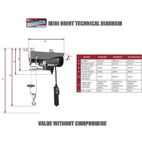 Warrior Elektrisches Hebezeug 230V 240VEH1000 inkl. Funkfernbedienung