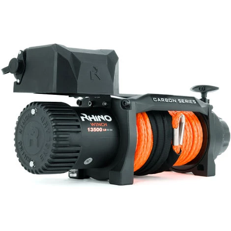 Rhino – Elektrische Seilwinde 13,500lb / 6125kg Carbon Series – 12V – kabellos mit Fernbedienung – Synthetikseil