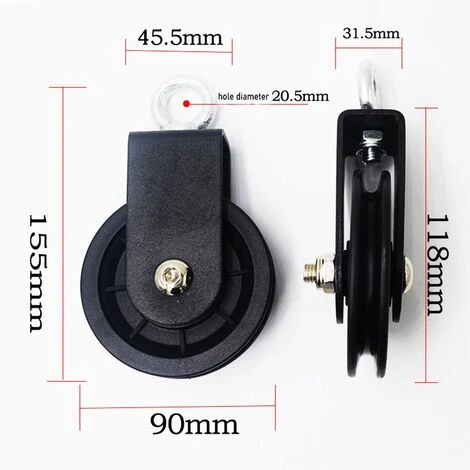 Abmessung: Gesamtlänge: 155 mm / 6,1 Zoll Breite: 90 mm / 3,5 Zoll; Unterstützung: 95*45,5*31,5mm/3,7*1,8*1,2”; oberer Lochdurchmesser: 20,5 mm / 0,8”. Der schwenkbare Flaschenzug dient zum Aufhängen schwerer Gegenstände, um die Last zu erleichtern.