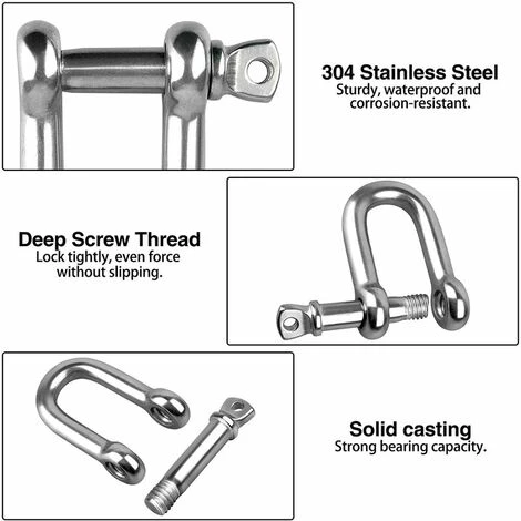 Breiter Einsatz: Dieses Bügelschloss aus Edelstahl mit D-Ring 304 wird häufig zum Aufhängen von Sandsäcken, Bergsteigen, Wandern, Ankerketten, Segelzubehör und Schränken verwendet. Geeignet zum Verbinden von Blumenkorb-Hakenschrauben, schweren Schraubketten, Haken und anderem Zubehör.