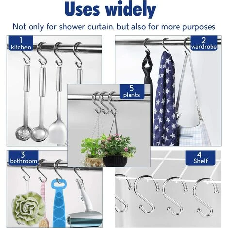 - BREITE ANWENDUNGSBEREICHE: nicht nur für Duschvorhänge, sondern auch zum Aufhängen von Handtüchern, Töpfen und Pfannen, Kaffeetassen, Kleidung, Pflanzen im Badezimmer, Küche, Schlafzimmer, Büro und Garten usw.