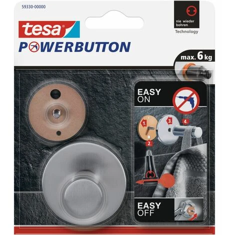 Der tesa Powerbutton Classic Haken rund wird aus Edelstahl hergestellt, lässt sich ohne Bohren an die Wand bringen und gewährt einen sicheren Halt für Gegenstände bis zu 6 kg. Mit dieser starken Halteleistung eignet er sich z.B. zum Einsatz in der Küche oder im Bad, zumal er wasserfest, temperaturbeständig und rostfrei ist. Ob Sie Saunatücher, Lederjacken oder schwere Bademäntel aufhängen möchten – ein Powerbutton-Haken ist die ideale Lösung. Die innovative Klebelösung überzeugt durch die bewährte tesa-Qualität. Machen Sie sich das Leben leichter mit tesa!Farbe: chromMaterial: EdelstahlMaß: 0,4 x 0,5 x 0,5 cmBefestigung: zum Klebenbelastbar bis zu 6 kgHält auf Fliesen, Metall, Naturstein, Marmor, Glas, Holz und vielen Kunststoffenjederzeit spurlos wieder ablösbarwasserfest und temperaturbeständig