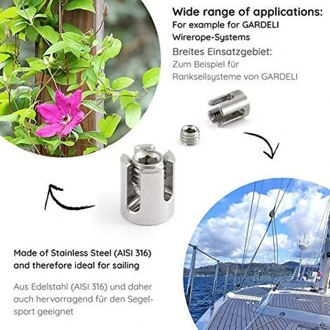 TOP QUALITÄT: Die Kreuzkabelbinder für 2 mm Drahtseile sind aus Edelstahl AISI 316 (V4A) und somit absolut rostfrei