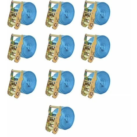 Die strapazierfähigen Zurrgurte mit Ratschen können im Allgemeinen für die Befestigung bzw. Fixierung der Ladung bei Transport oder Lagerung verwendet werden. Die strapazierfähigen und robusten Zurrgurte sind aus qualitativ hochwertigem Polyester gefertigt und bieten eine Zurrkraft von je 2 Tonnen. Die Spanngurte wurden unter Einhaltung der EN-12195-2 Europanorm hergestellt und sind mit einfach bedienbaren Ratschen mit Sperrklinken ausgestattet, welche die Spannung unterwegs aufrechterhalten und dafür sorgen, dass die Lasten am Platz bleiben. Im Lieferumfang sind 10 Zurrgurte mit Druckratsche enthalten