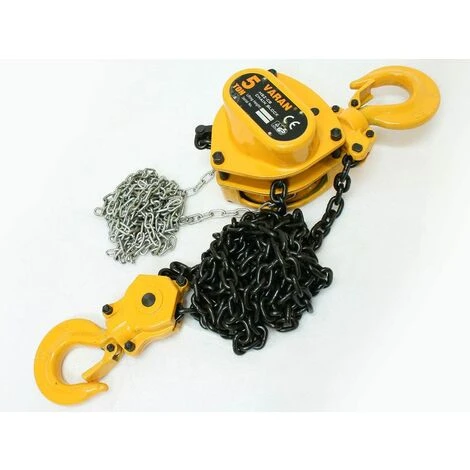 Handkettenzug mit einer maximalen Belastbarkeit von 5000 KG. Mit diesem Modell können Sie Lasten von bis zu 5 Tonnen heben und leicht bewegen, wie z.B. Generatoren, Motoren oder andere, schwere und sperrige Lasten.